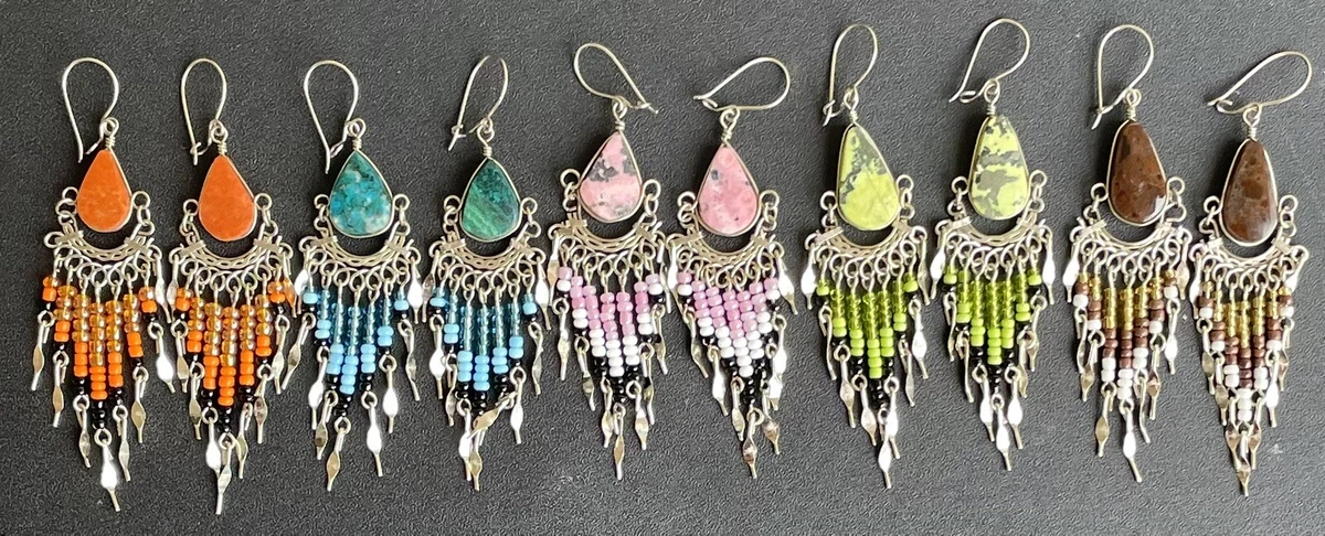5 Pairs Peruvian Semi Precious Stone Seed Bead Earrings Handmade Dangle Lot Peru Ebay